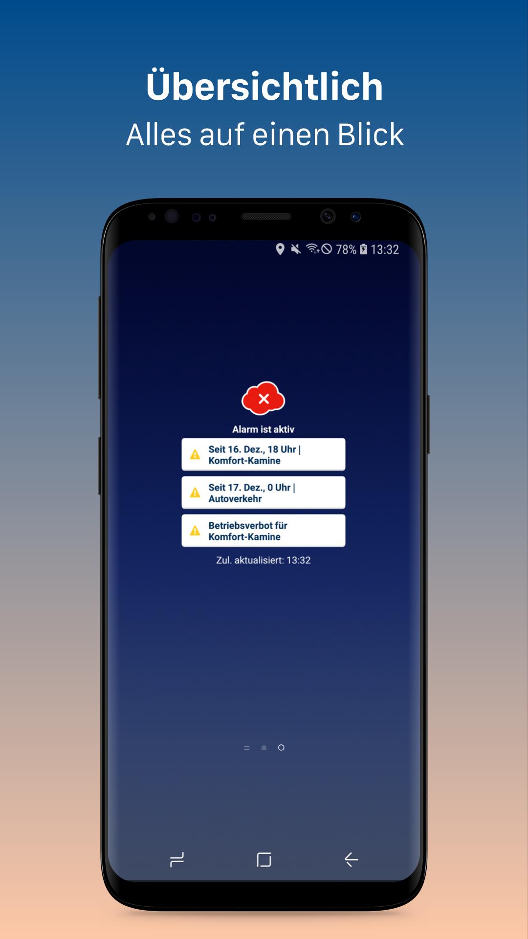 Aplikasi alarm debu halus dengan cepat dan andal memberi tahu Anda tentang situasi debu halus saat ini.